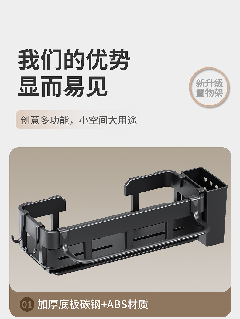厨房置物架免打孔抹布海绵沥水收纳多功能壁挂调料架家用水槽神器的描述