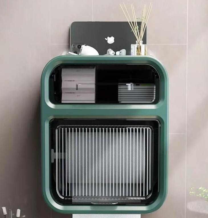 柯丽影卫生间纸巾盒厕所纸巾盒置物架免打孔厕纸盒壁挂卷纸抽纸盒绿色的描述