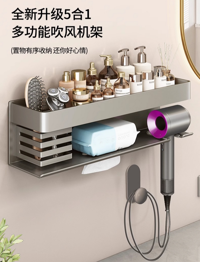 吹风机置物架免打孔卫生间洗漱台电吹风牙刷浴室架子洗脸巾洗脸台的描述