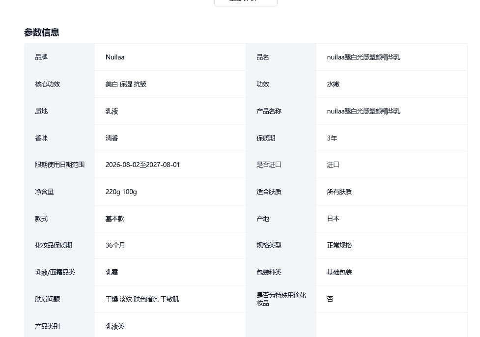 进口Nuilaa乳液保湿美白去黄补水提亮水乳紧致抗皱抗初老护肤品的描述