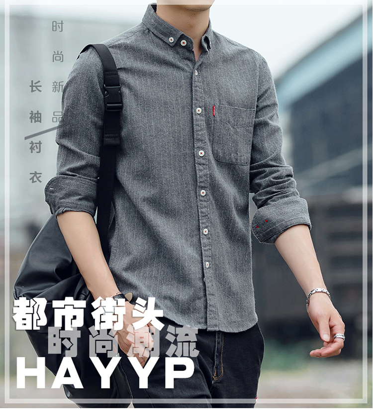 秋季男士磨毛衬衣宽松休闲上衣男款纯棉衬衫长袖痞帅男装潮流外套